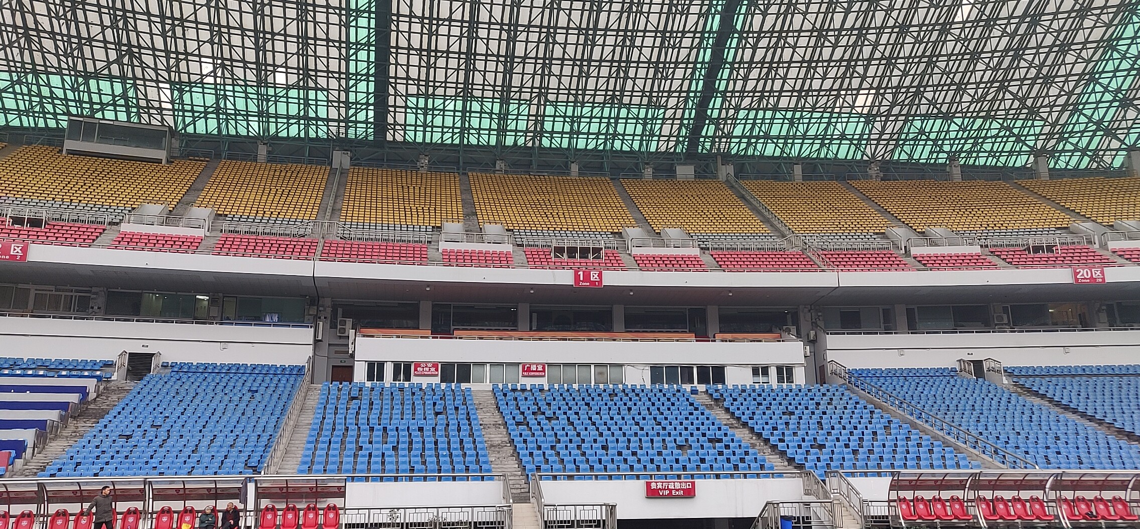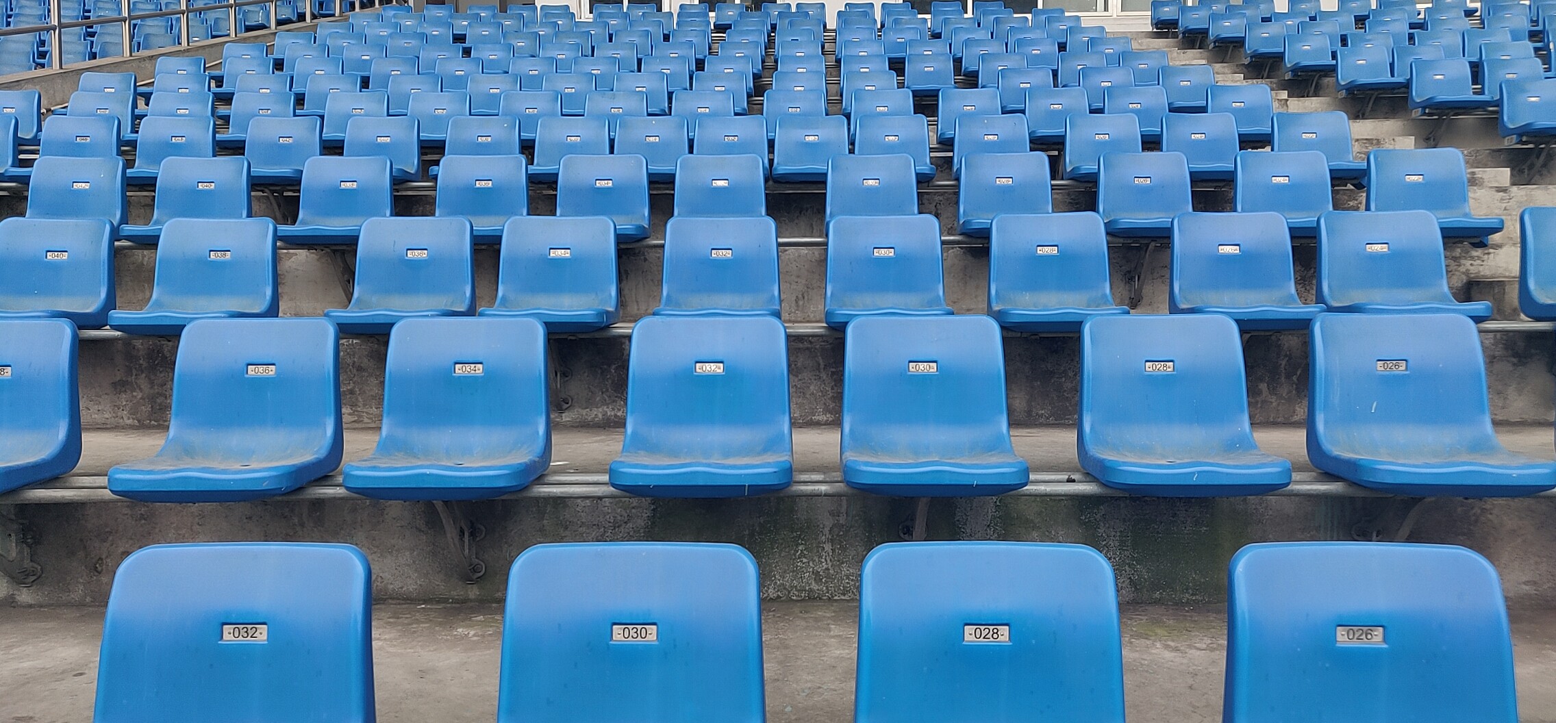 1. Medium height Outdoor / Indoor stadium seat fixed onto concrete by metal base and bolts.