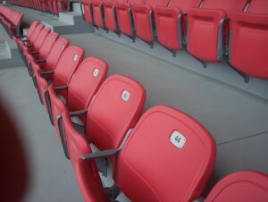 The JUYI BLM-4652 is a wall-mounted stadium seat boasting innovative structural design, with precision-machined aluminum alloy brackets ensuring stable load-bearing and smooth folding.