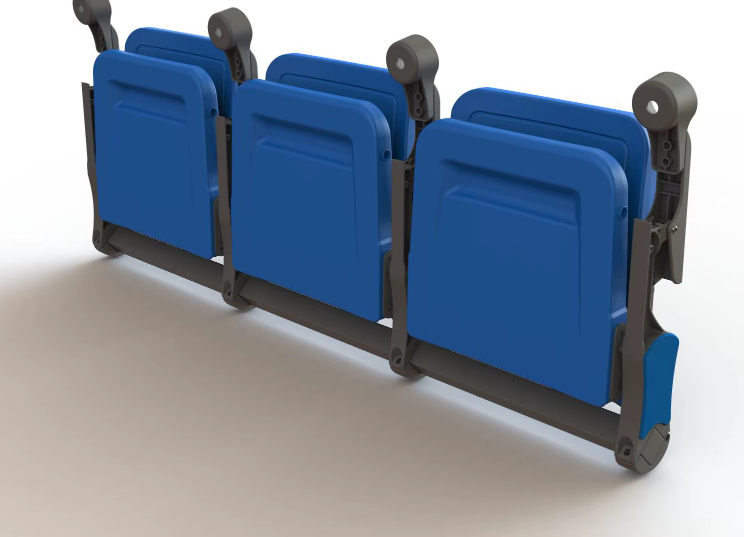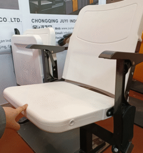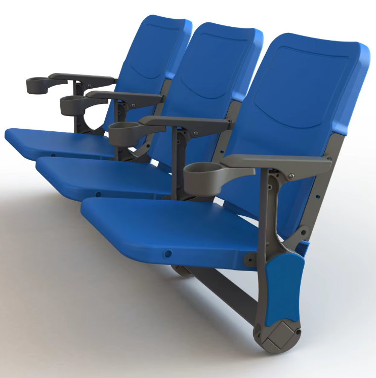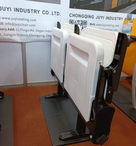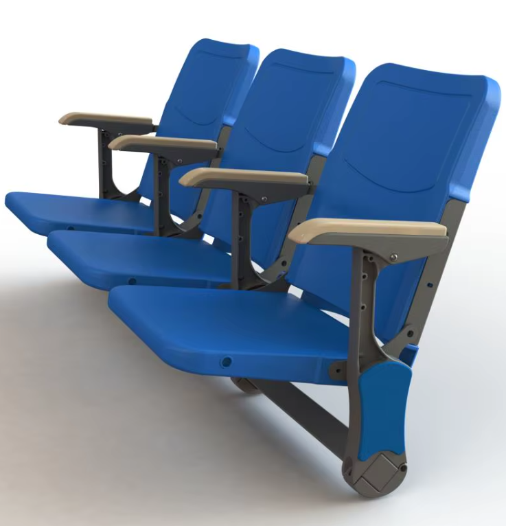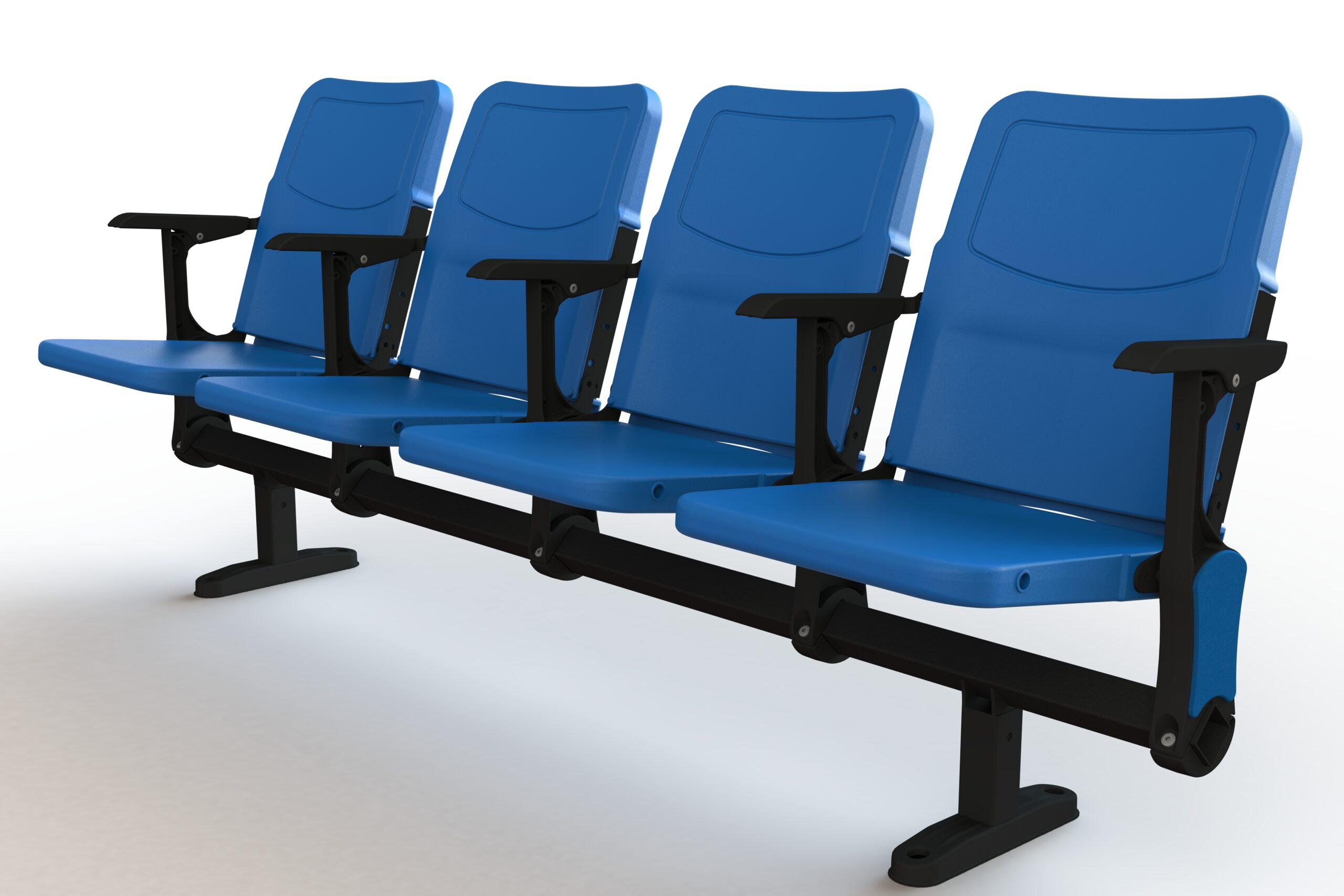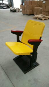 Blow molding flip up stadium chair model BLM-6200(Floor mounted) — Made in accordance with ergonomic design, with armrest. The overall effect is beautiful and luxurious after installation. It is very comfortable to seat, and people will not feel tire although seat on this chair very long time.