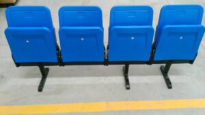 Armrest & leg steel frame: Made in shape steel, stamping mould parts, and treated by powder coating. We use expansion bolt to install the metal legs, Drilling degree of unity in order not to break the Waterproof layer of step. There are seat number for each chair and row number for option.