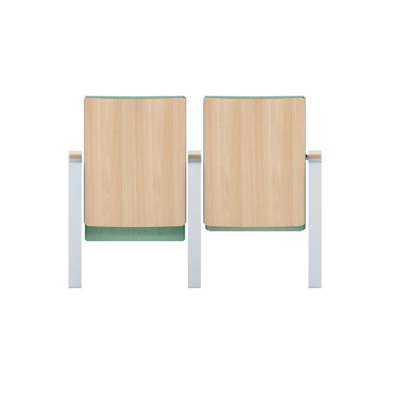 The chair’s overall wood finish uses bright walnut and maple textures, infusing public spaces with vitality: it exudes calmness without feeling monotonous.
