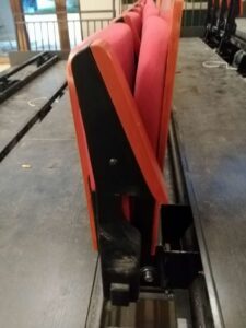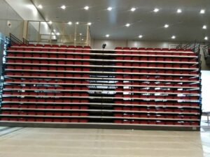 This front-mounted telescopic bleacher quickly expands into tiered, unobstructed seating and retracts compactly to free up floor space—ideal for events, meetings, or exhibitions.
